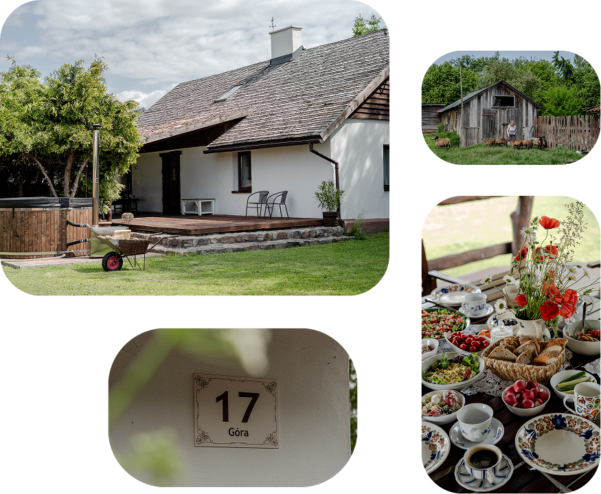 A do tego, jajecznica z jajek od naprawdę szczęśliwych kur i smak jabłek zebranych z jabłoni w naszym sadzie. Wieczorem grill na pięknym tarasie i relaks w jacuzzi.